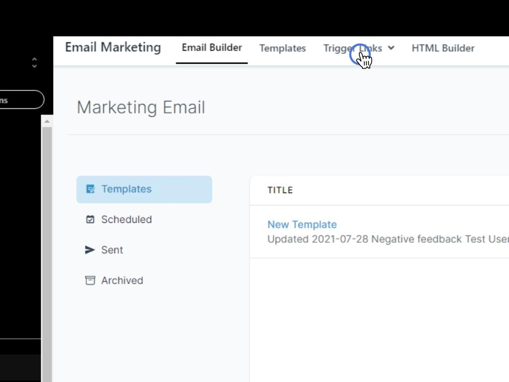 Click “Email Marketing” on the left side menu, and then click “Trigger Links” in the top menu.