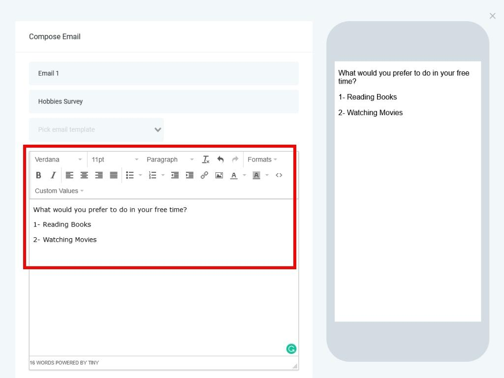 The email editor will pop up. Add an email name, add a subject, and write the body of your email.