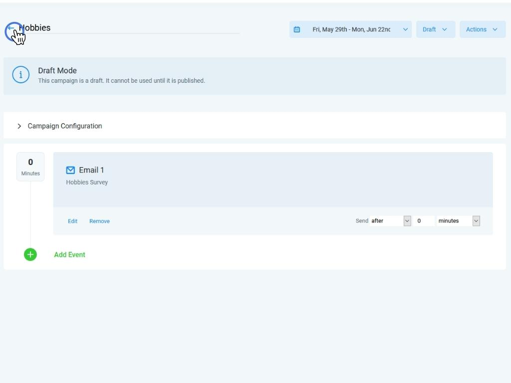 Next, we’ll need to create an event in our campaign - click the “Add Event” button and select Email.
