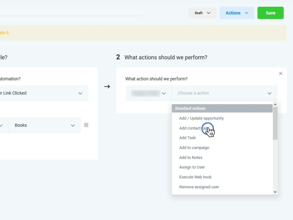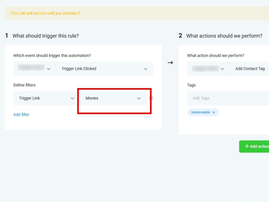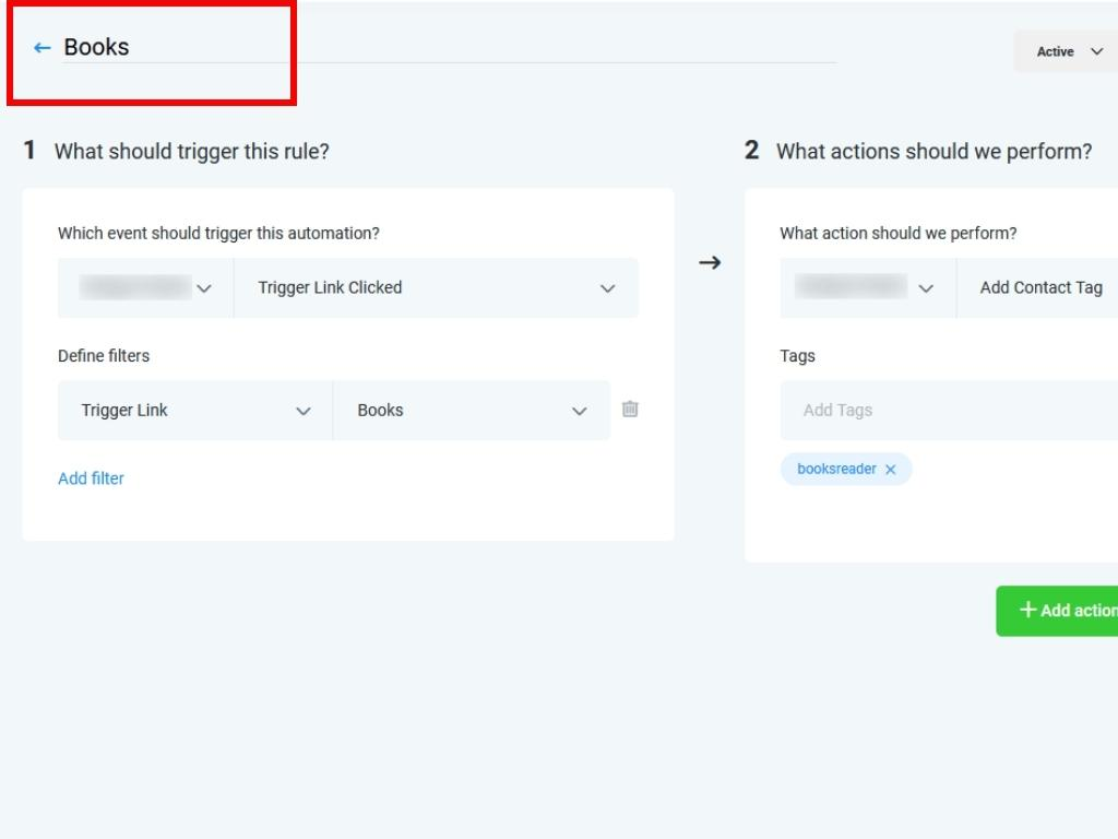 The trigger links we have created will be in this list, so we’ll select the Books trigger link, and add the appropriate action.
