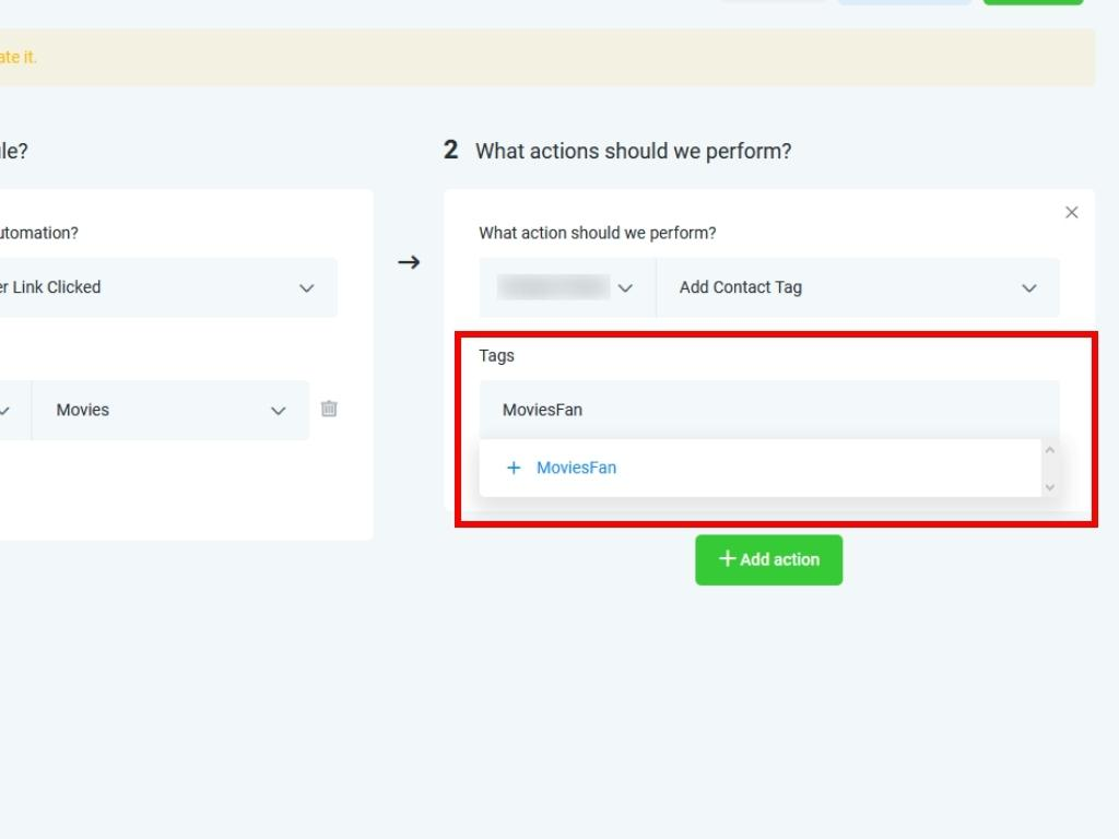 And in the actions on the right side, we’ll change the tag from “booksreader” to “MoviesFan.”