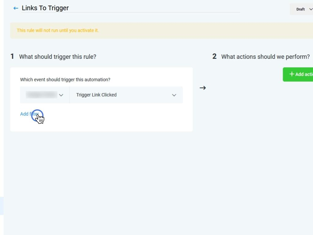 We’ll also need to click “Add filter” to specify which trigger link we want to activate our trigger.