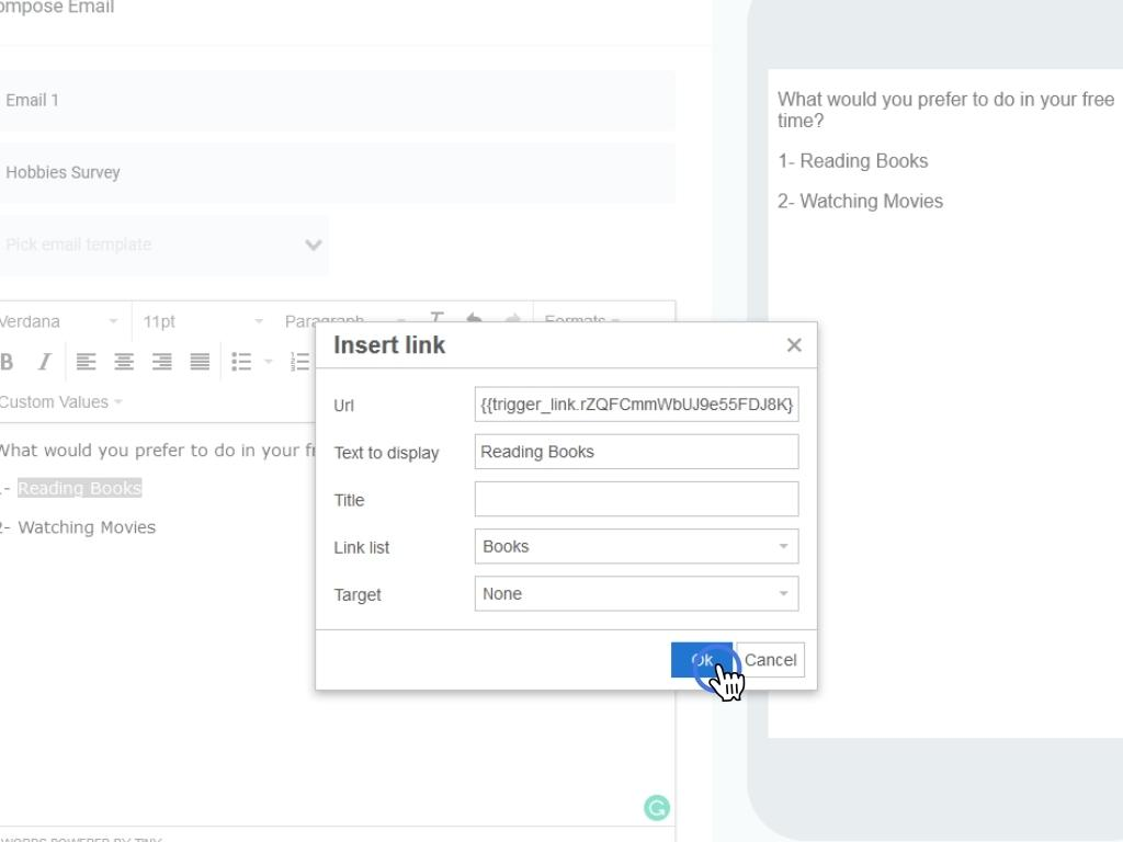 Our Books and Movies triggers have been created successfully and will fire whenever their related trigger links are clicked from the emails we send.