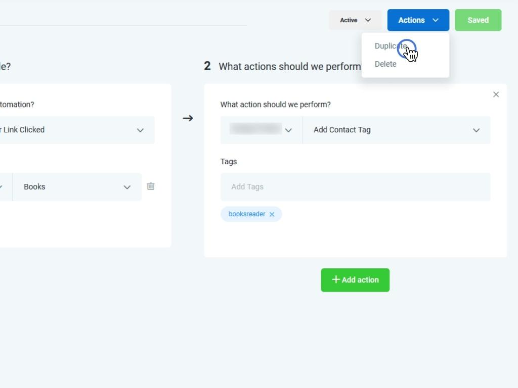 Creating our second trigger rule will be much easier - we’ll just click “Duplicate” under the Actions dropdown to copy our first rule.