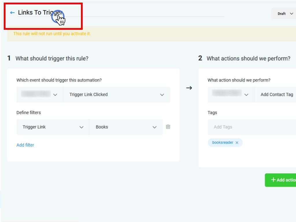 To use your trigger rule, you’ll need to change the trigger rule from draft to “Active “and then click “Save”.