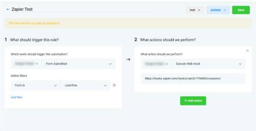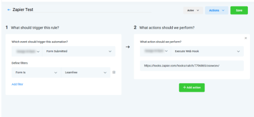 Click “Add Action”, and then choose “Execute Webhook” from the dropdown.
