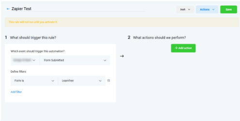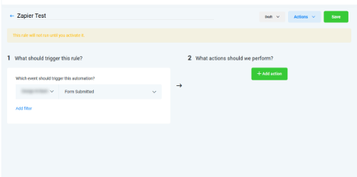 If you have multiple accounts on your CRM, select the one you want. Then, click the “Choose a trigger” drop-down and select the “Form submitted” condition.