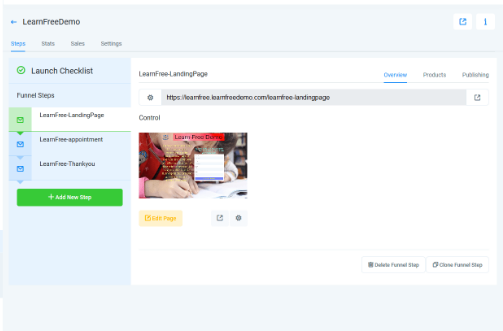 As mentioned before, we already have the form created and integrated into a funnel. We’ll open the funnel, LearnFreeDemo, now.