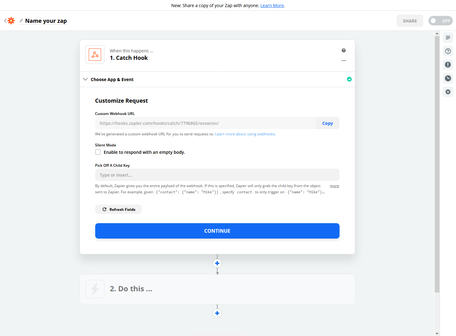 Now we have to tell Zapier what to do with the data it found (the “Do this…” step).