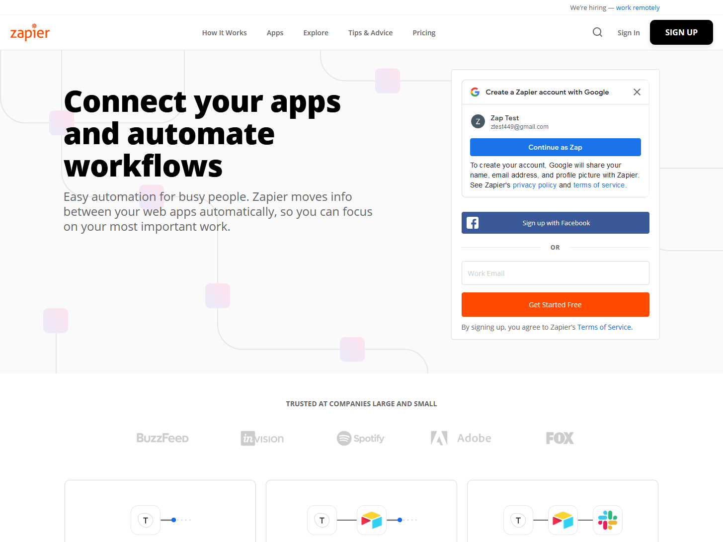 Zapier offers multiple login options, but we're going to use our Google account to make things easier.