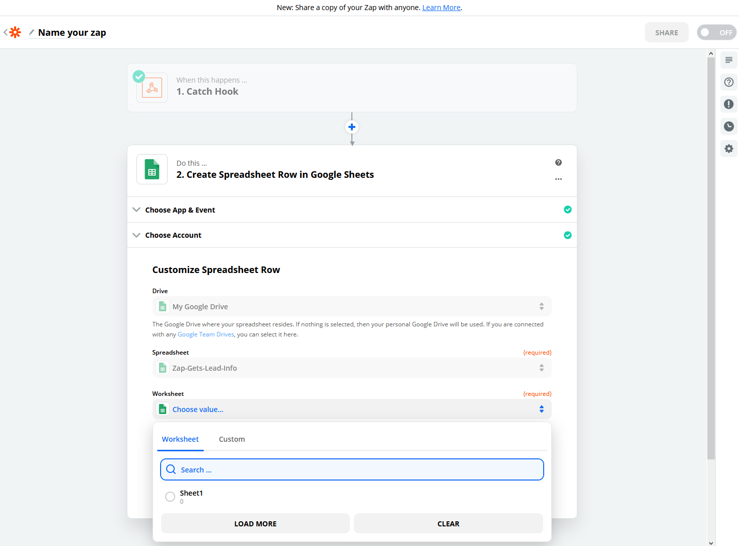 This will import the Sheet's column titles, and we'll have to match them with the data coming from our CRM.