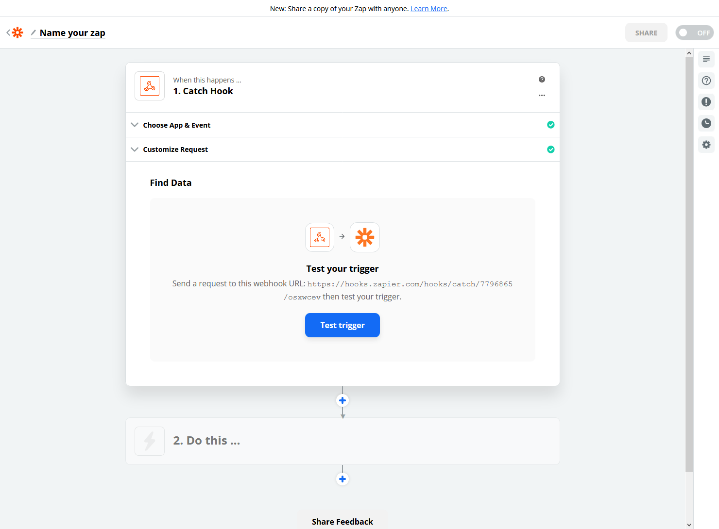 The first step to creating a Zap is called, “When this happens…”
