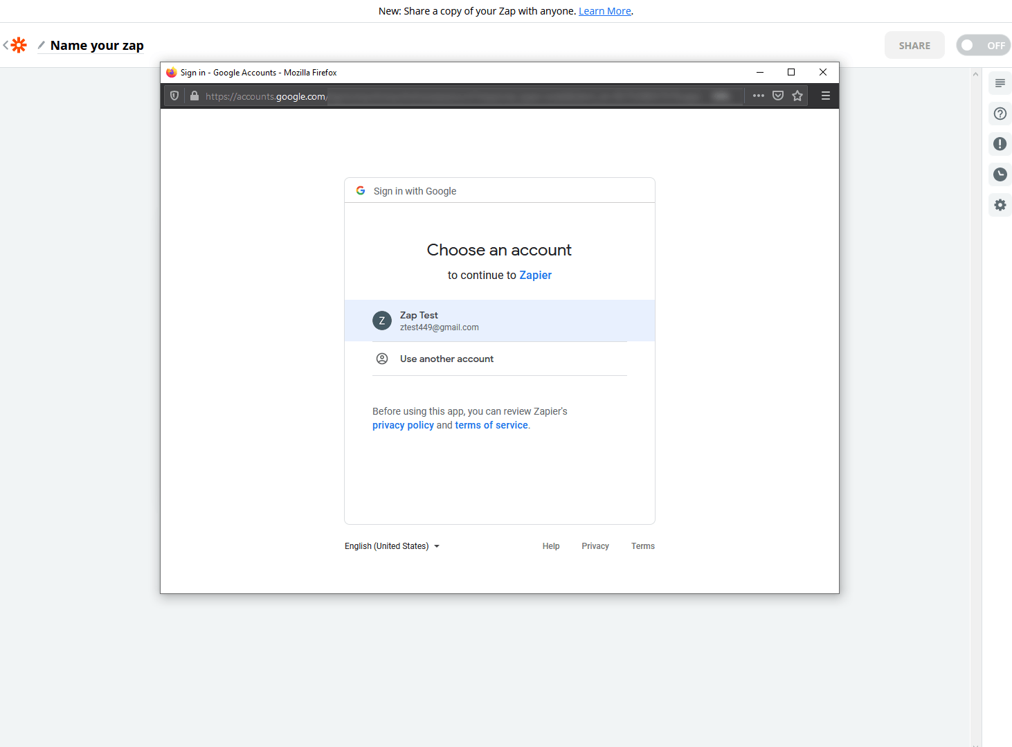 Select your “Google Account”, and then click “Allow” on the next page to give Zapier the necessary permissions.