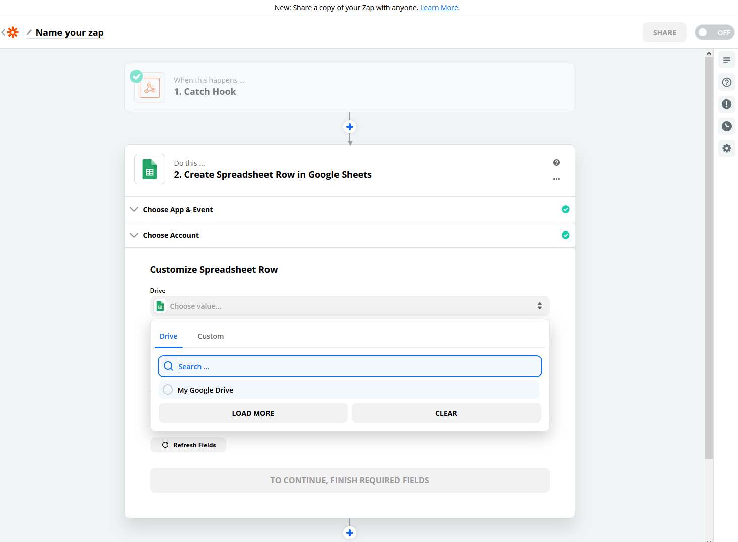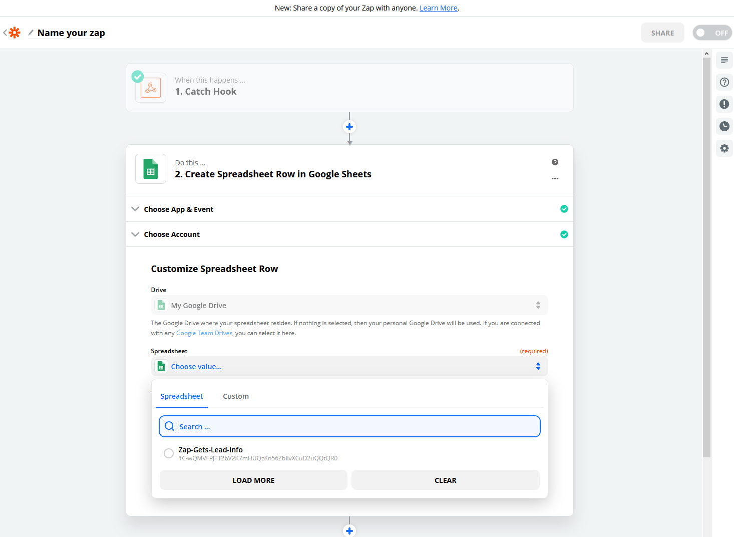Ok, we're ready to switch back to the Zapier tab.