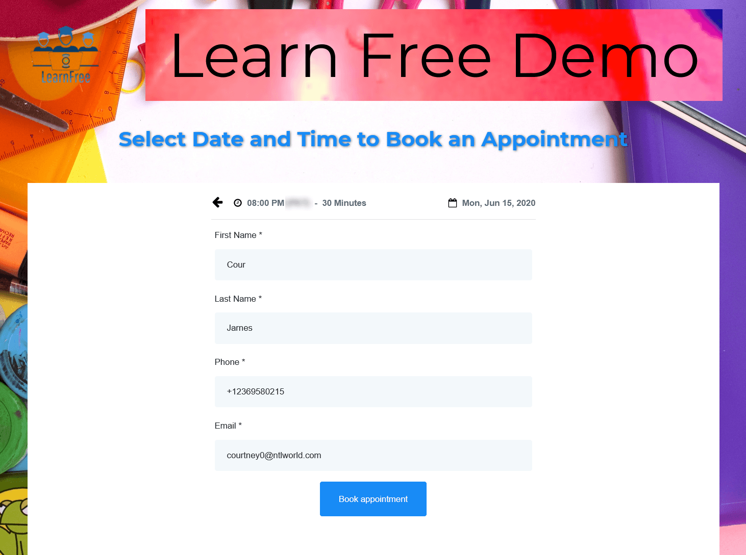 To confirm, we'll click the “Book Appointment” button.